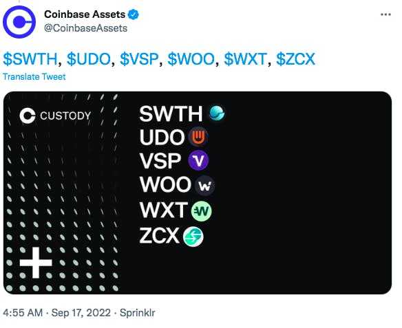 Finally, Coinbase Custody is one of the steps to enter the larger Coinbase ecosystem. Many of the tokens and crypto coins listed today on Coinbase were listed on Coinbase Custody first. Of course, that's not a guarantee that it'll happen, but it's a very encouraging sign.