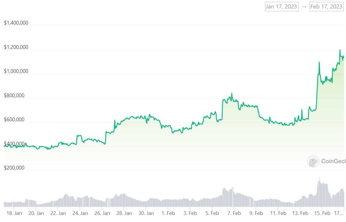 Between January and February 2023, the coin’s market cap grew by 300%, setting the pace for unprecedented growth in the coming months.