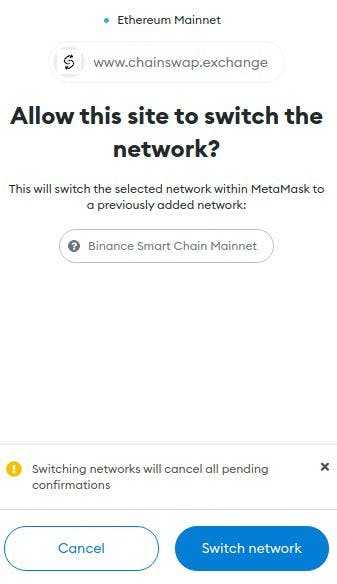 Once again, it will open up the MetaMask and ask the user to switch chain to BSC. Click on “Switch Network”.
