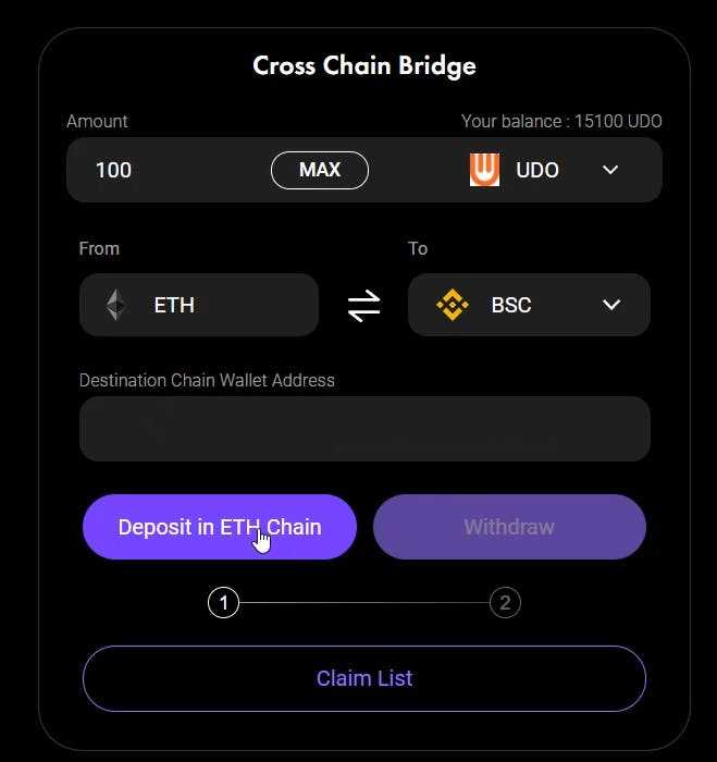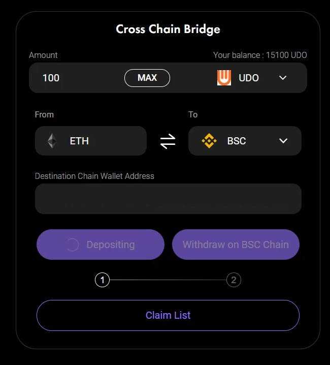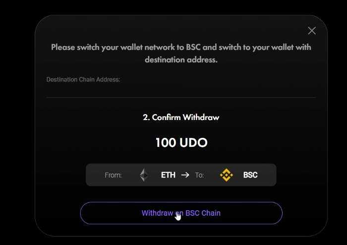 Congrats! You have successfully bridged your $UDO tokens from ETH to BSC.
