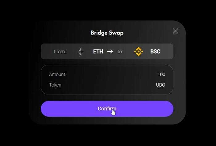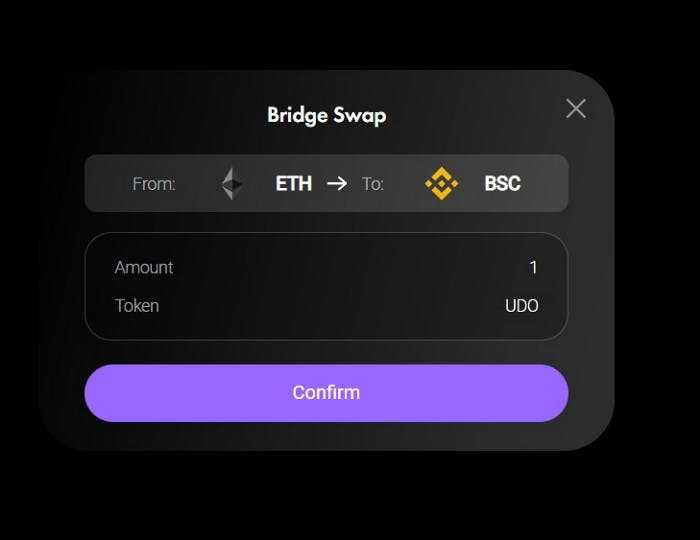 Click on CONFIRM after entering the number of $UDO tokens that you want to move from Ethereum to BSC.