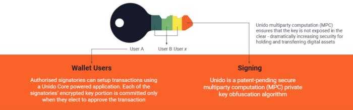 Unido Core is Unido’s proprietary key management and transaction signing technology. It provides: